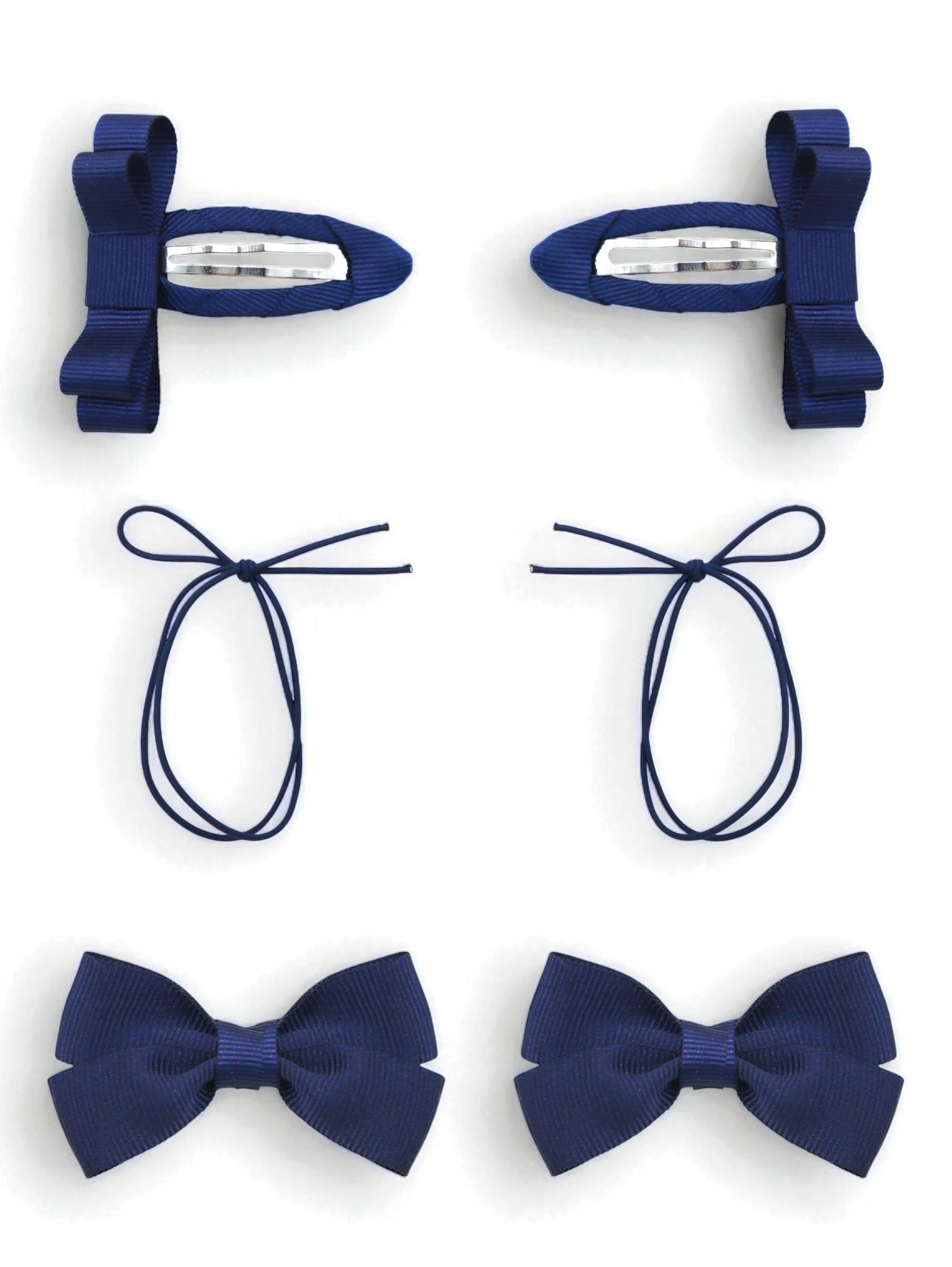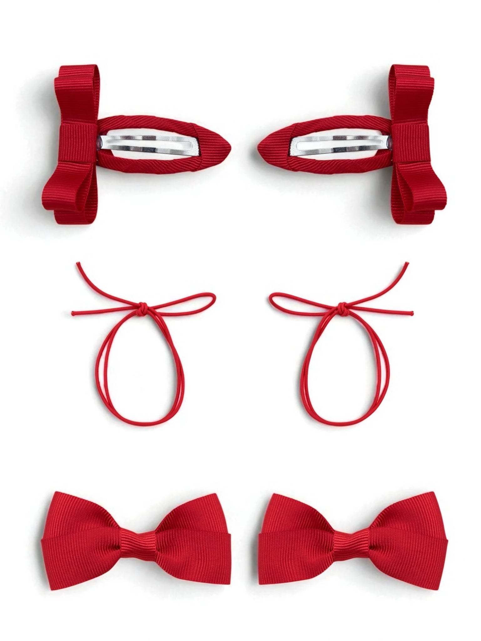 The MIXED PONY PACK RED is a 6-piece school hair clip set. This set is meticulously handcrafted using French ribbon. Each piece offers an elegant aesthetic while ensuring long-lasting use thanks to its durable materials.
