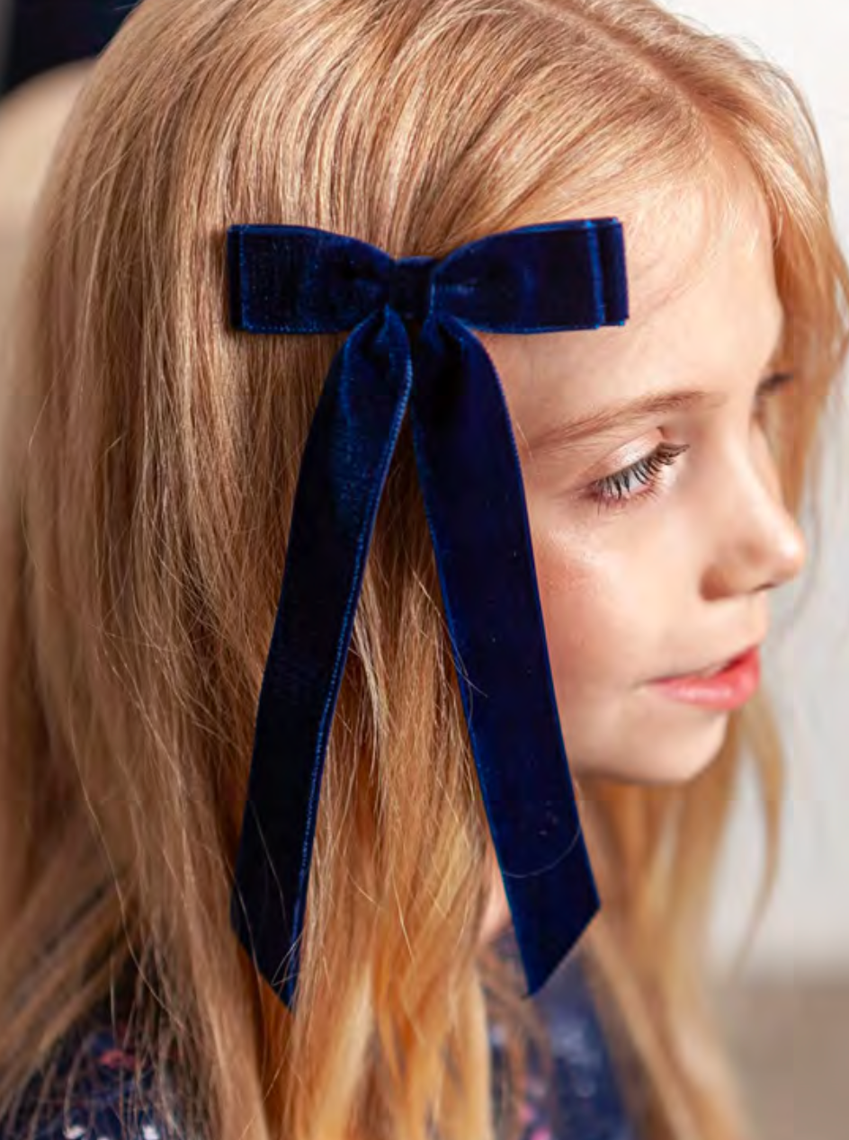 Designed specifically for children, the VELVET BOW CLIP is the perfect choice for parents looking for an elegant and stylish accessory. Crafted from high-quality velvet, this clip stands out for its durability and aesthetic appeal. It keeps children's hair tidy while also highlighting their style.