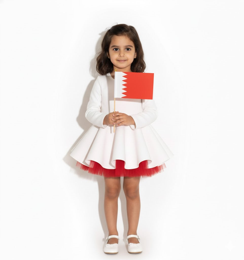 These tutus are designed especially for Bahrain National Day. With the combination of a one-piece white stretch body attached with white red tulle. You can combine our comfortable, colorful and fun dresses for both daily and special occasions.