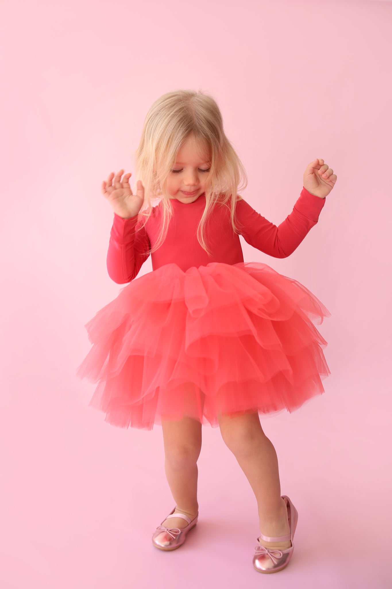 These tutus are designed with the combination of a one-piece Pink stretch body and tulle. You can combine our comfortable, colorful and fun dresses for both daily and special occasions.