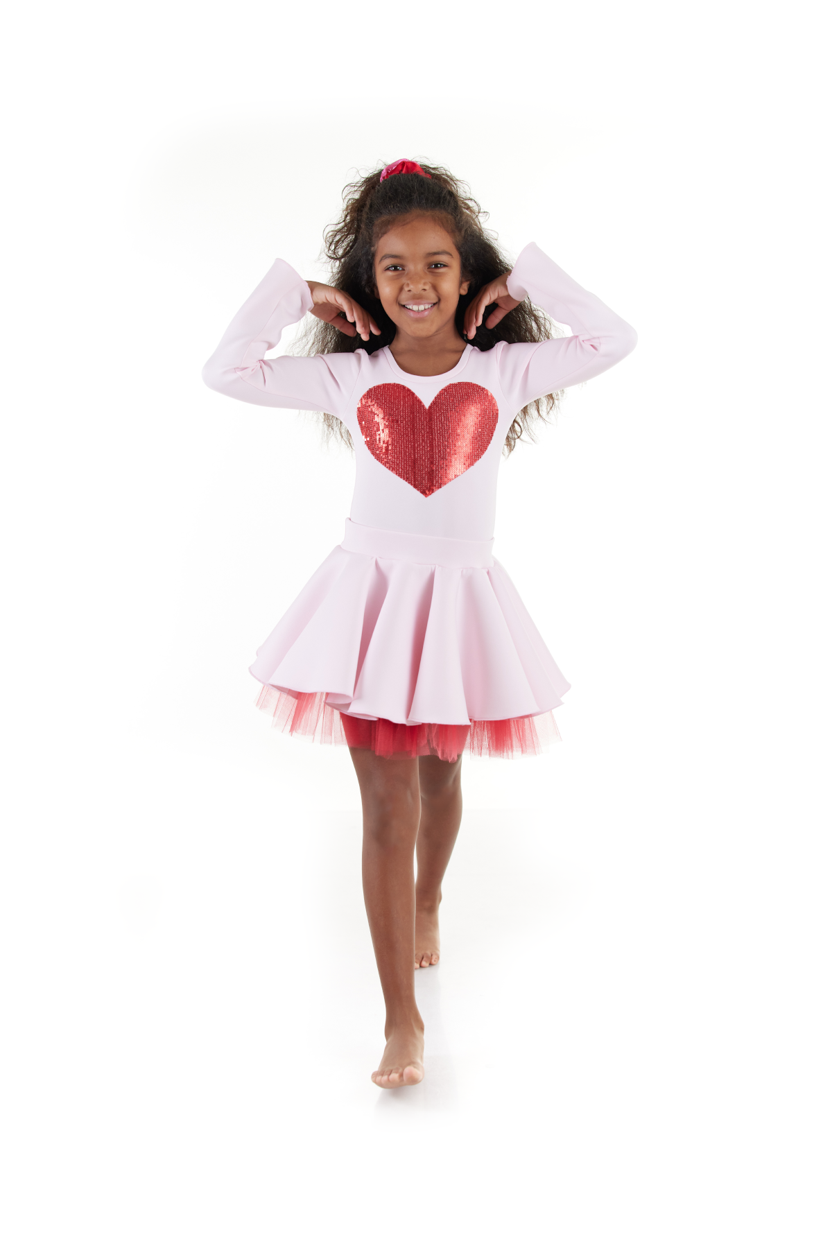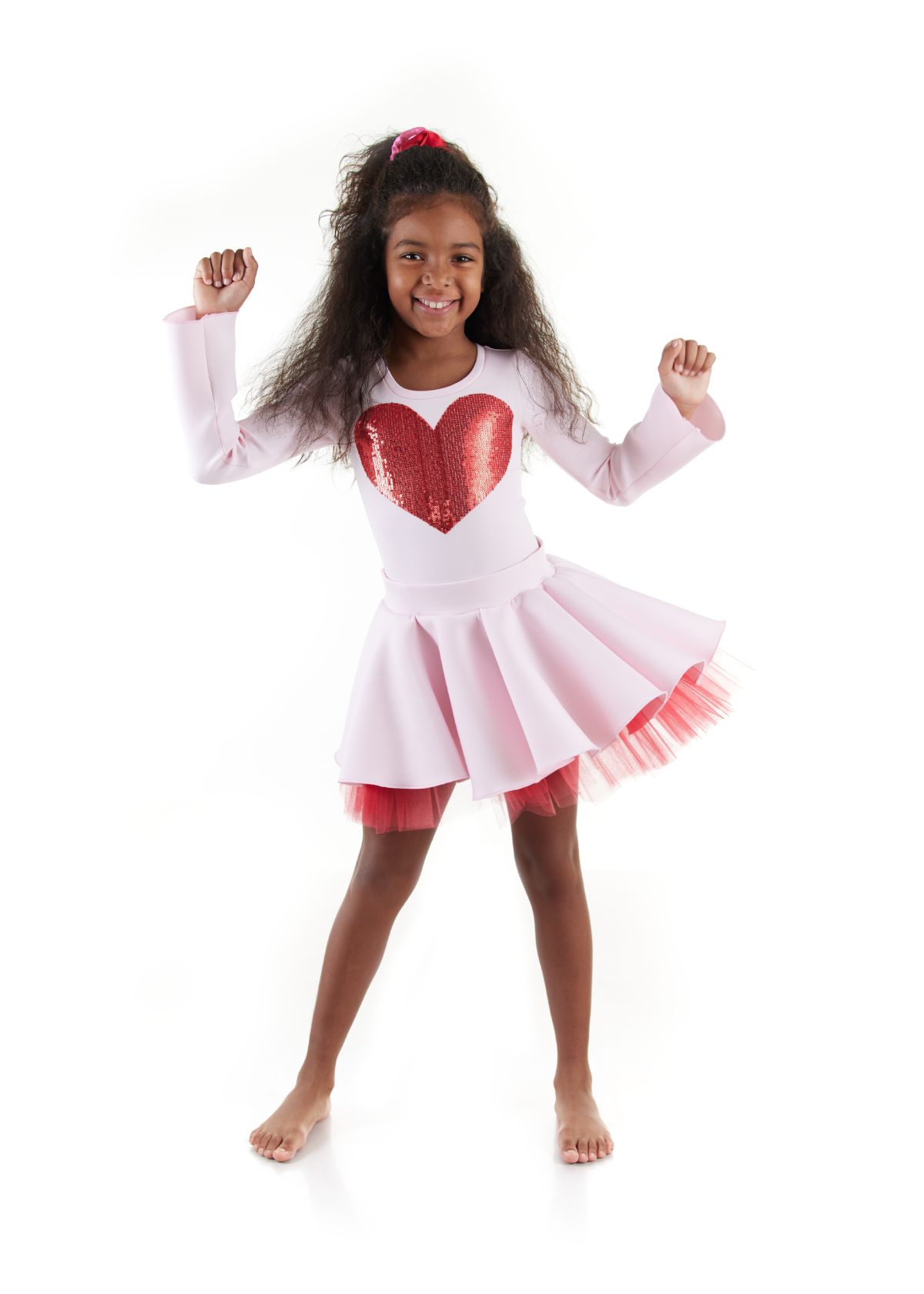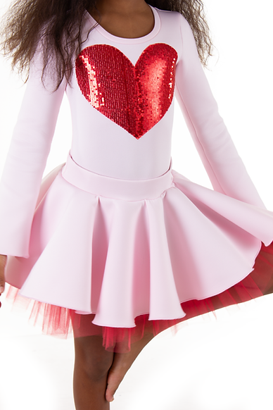 The second piece of the collection is our Pink & Red Skirt. This fun skirt is the matching piece to the Sequin Heart Top. You can buy the set together or seperately and style them individually.