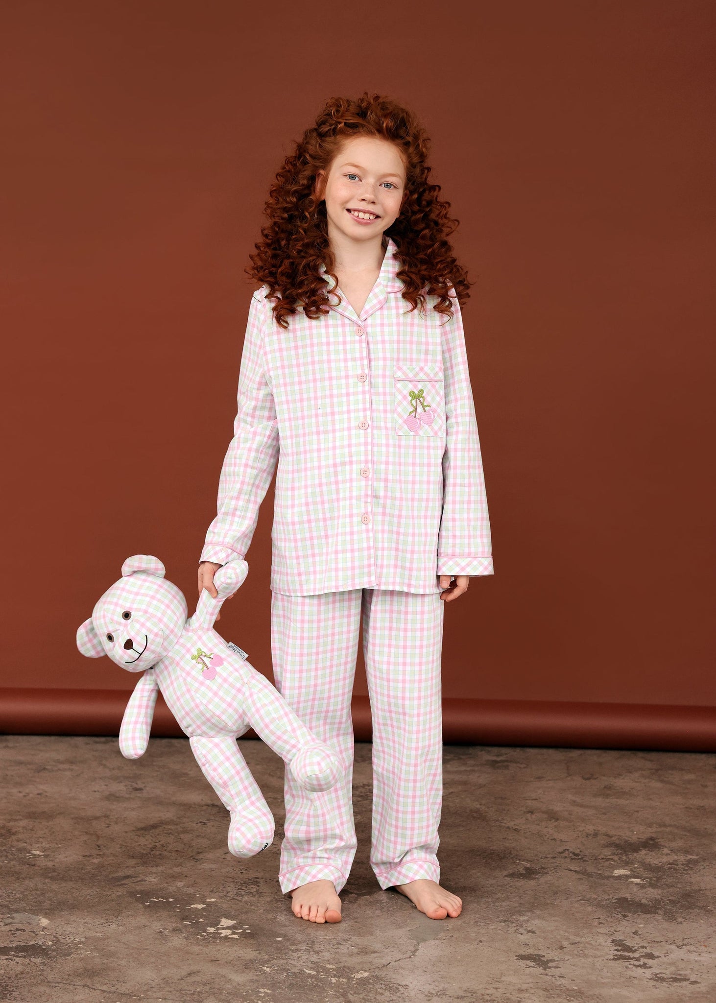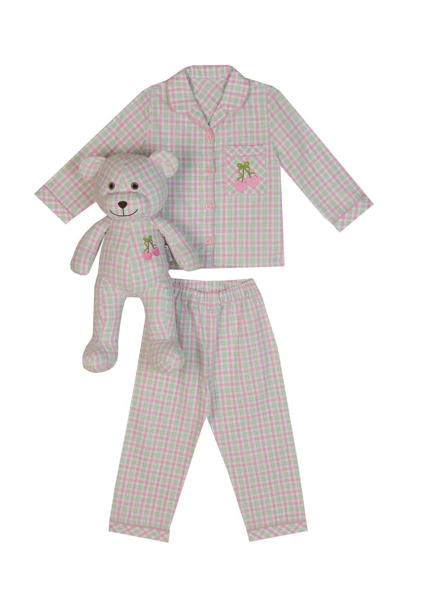 * The Luna Mia Pajama Set consists of one child's pajama set, one top and bottom, and one sleep companion plush teddy bear in matching pajamas.